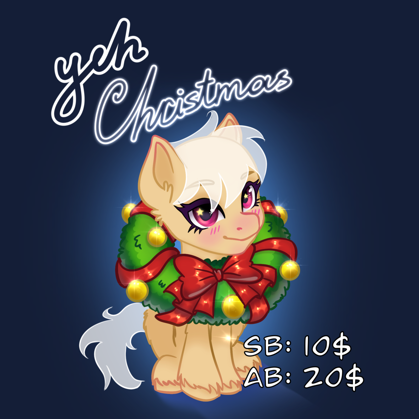 YCH Pony in a Christmas wreath