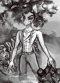 Your OC or Canon holding a tiny plushie