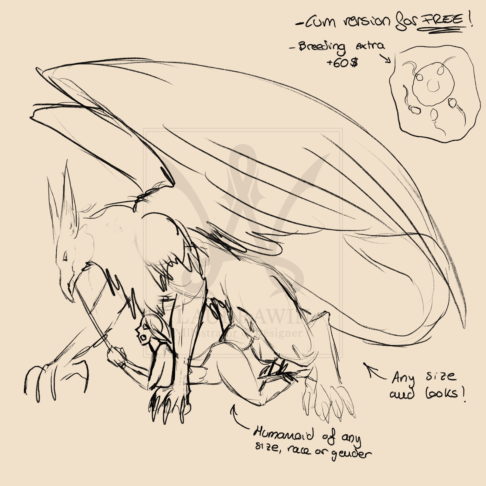 Wings or any extra on the humanoid may increase the price.