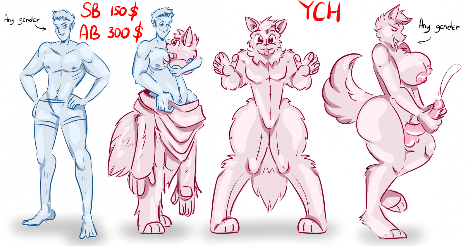 ♡ Any anthro-like species (furry, monster, pokemon, pokefusion, pony, etc.) and humans. Fandom characters are ok!