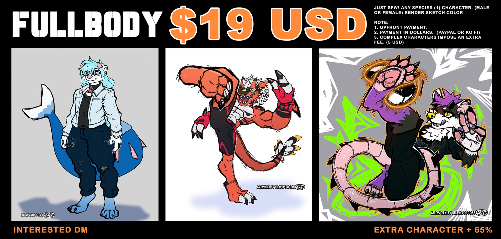 - Payment upfront via Ko-fi or PayPal.