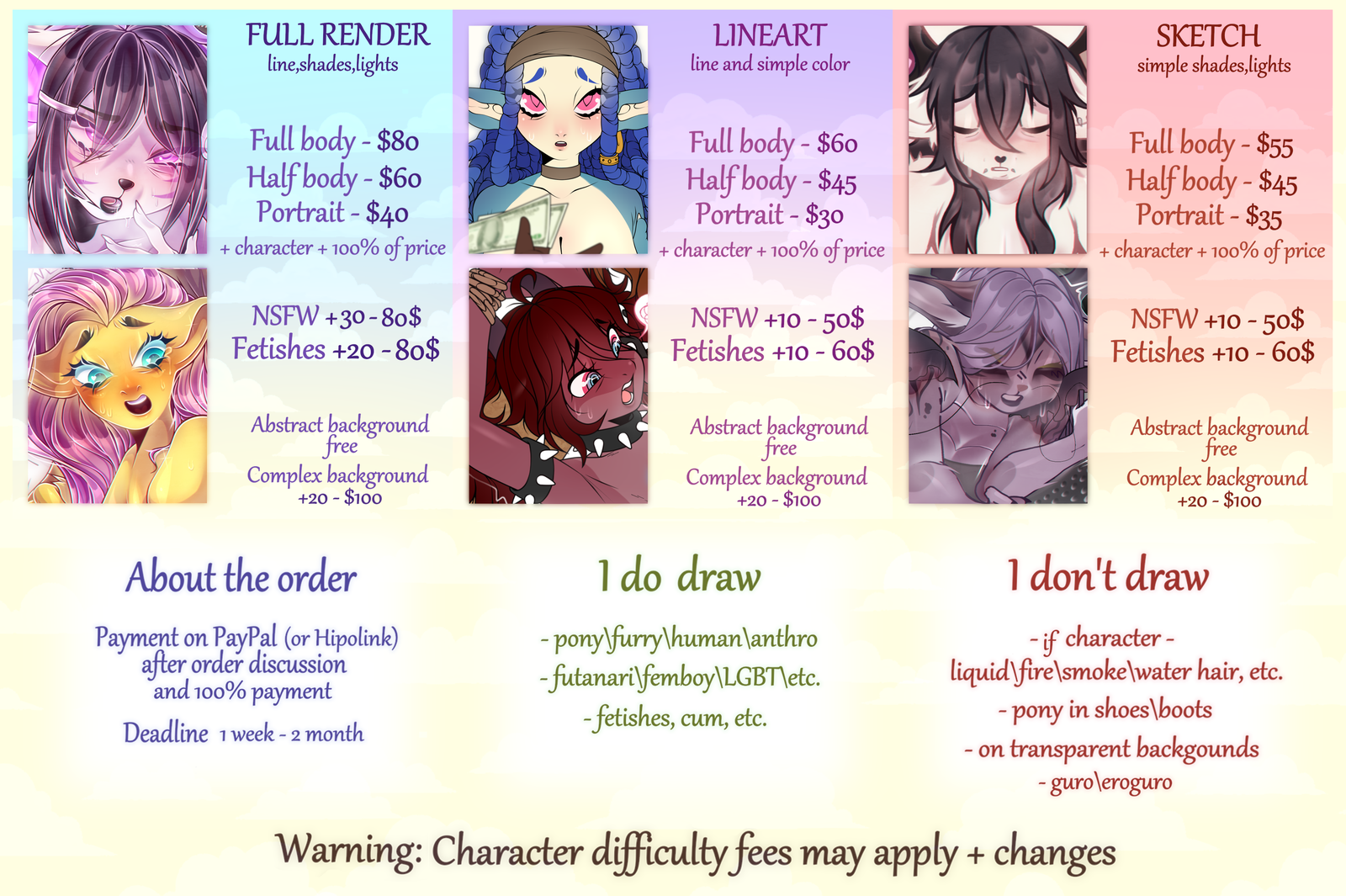 ‼️Warning: Complex characters, edits and additions come at an additional cost‼️