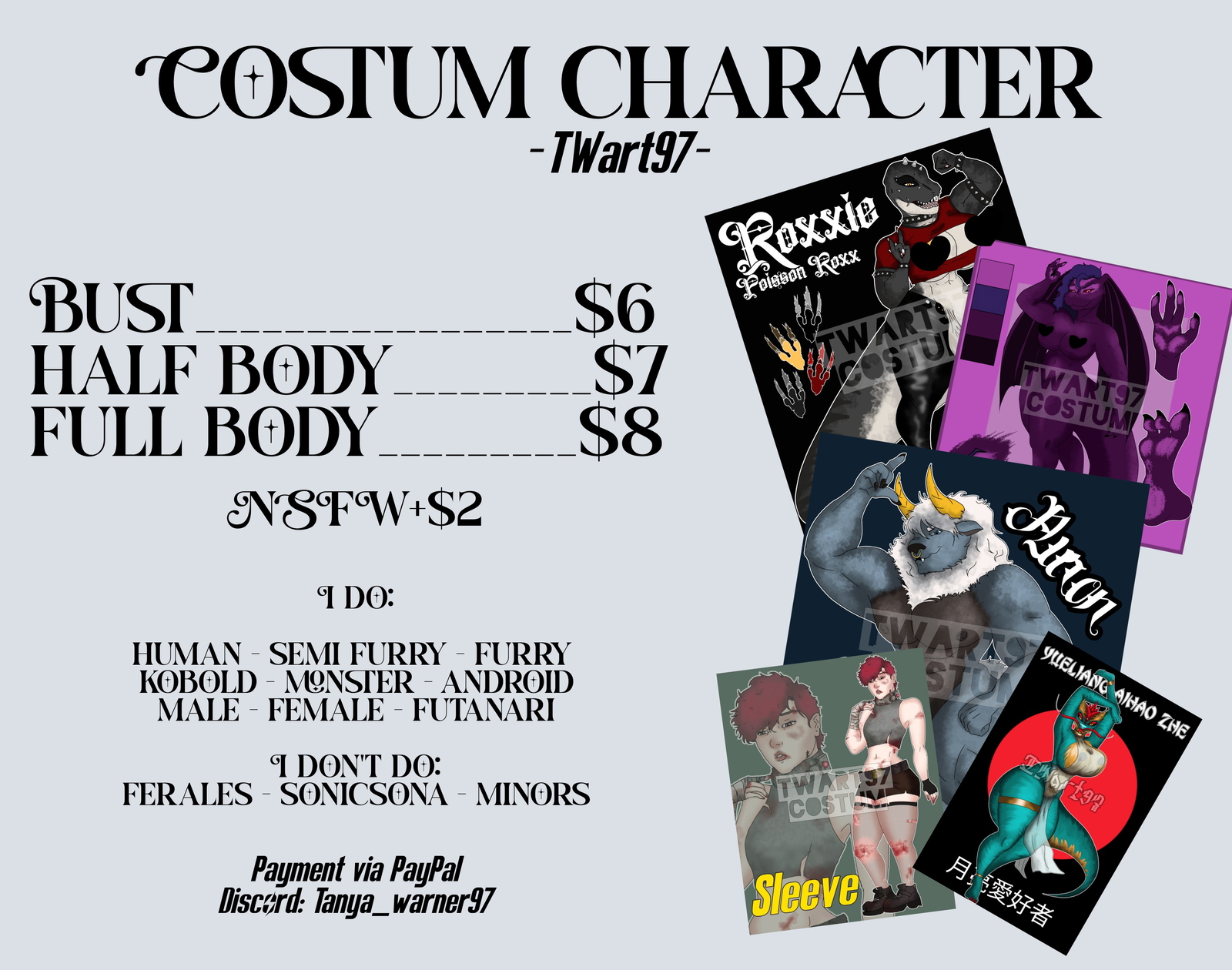 I'm now taking custom commissions to start work on Tuesday.