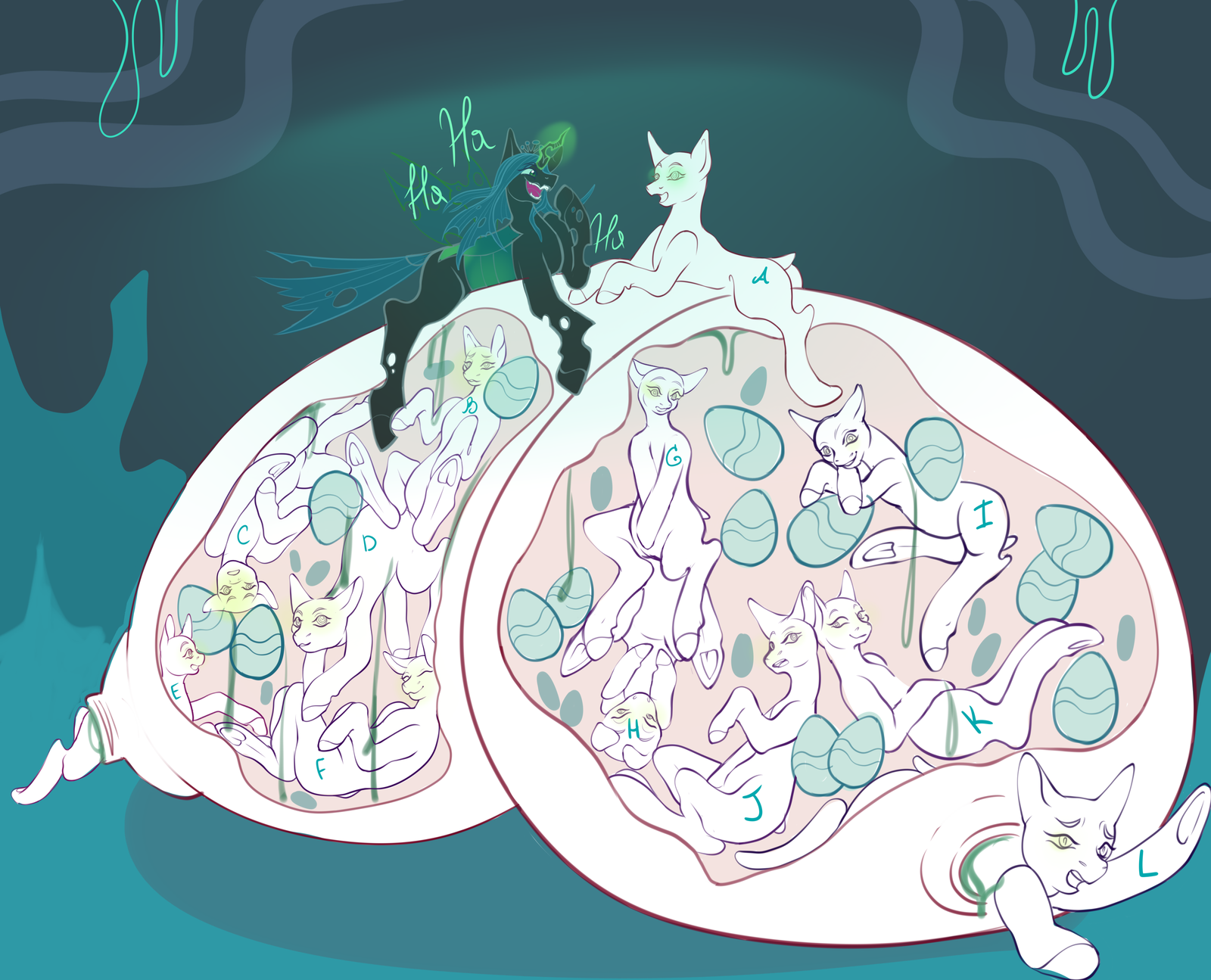 I drew sisters and Princess Cadance before, but I kept forgetting about Chrysalis! Let her have a good time in her lair ~