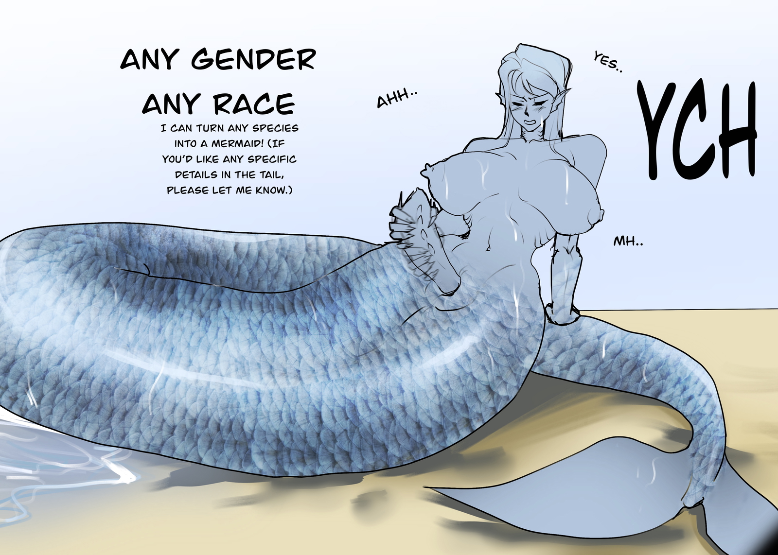 I can turn any species into a mermaid! (If you’d like any specific details in the tail, please let me know.)