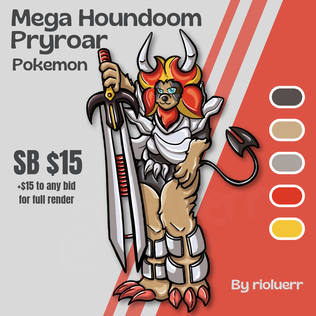 Born from an anomaly in a volcanic zone where a group of Pyroar adopted a lost Houndoom. The energy of Mega Evolution merged with the royal lion lineage, creating a unique hybrid!