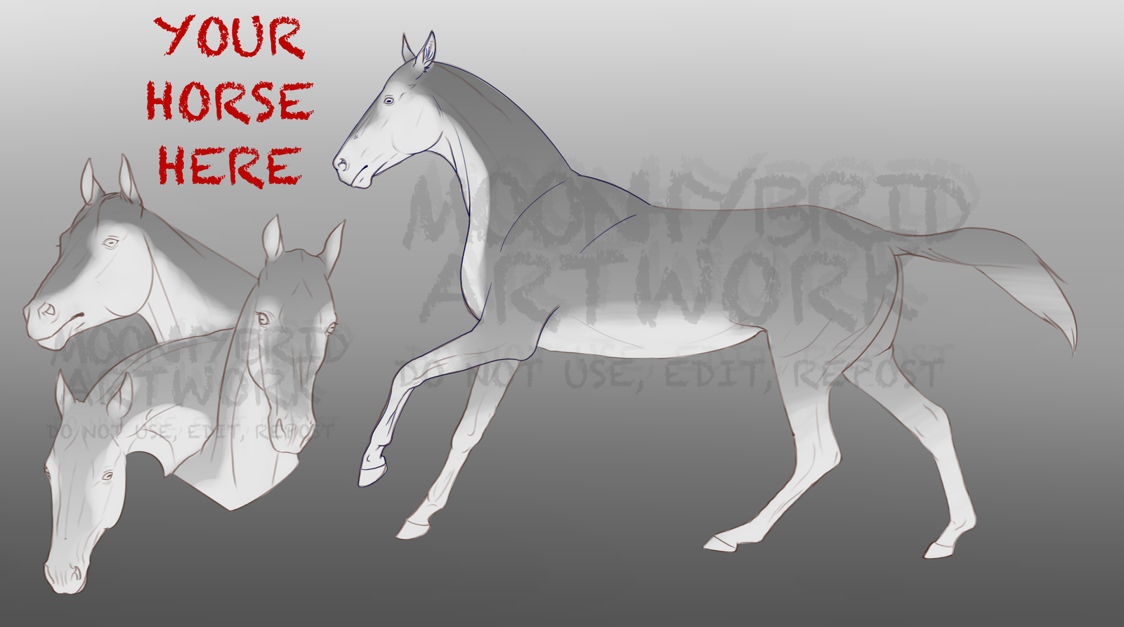 A Horse Refsheet that comes with 3 headshots.