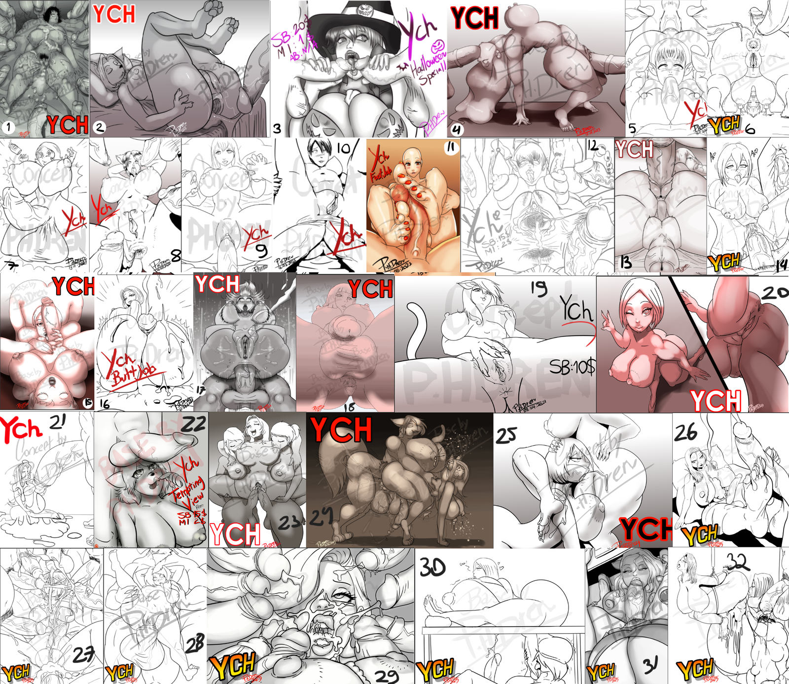 AB: The winner will recieve all 32 Colored YCHs in the auction image + Cum variation of all of them.