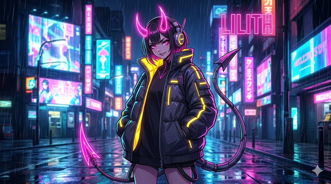 Meet "LILITH," the Neon Devil of the cyber-streets.