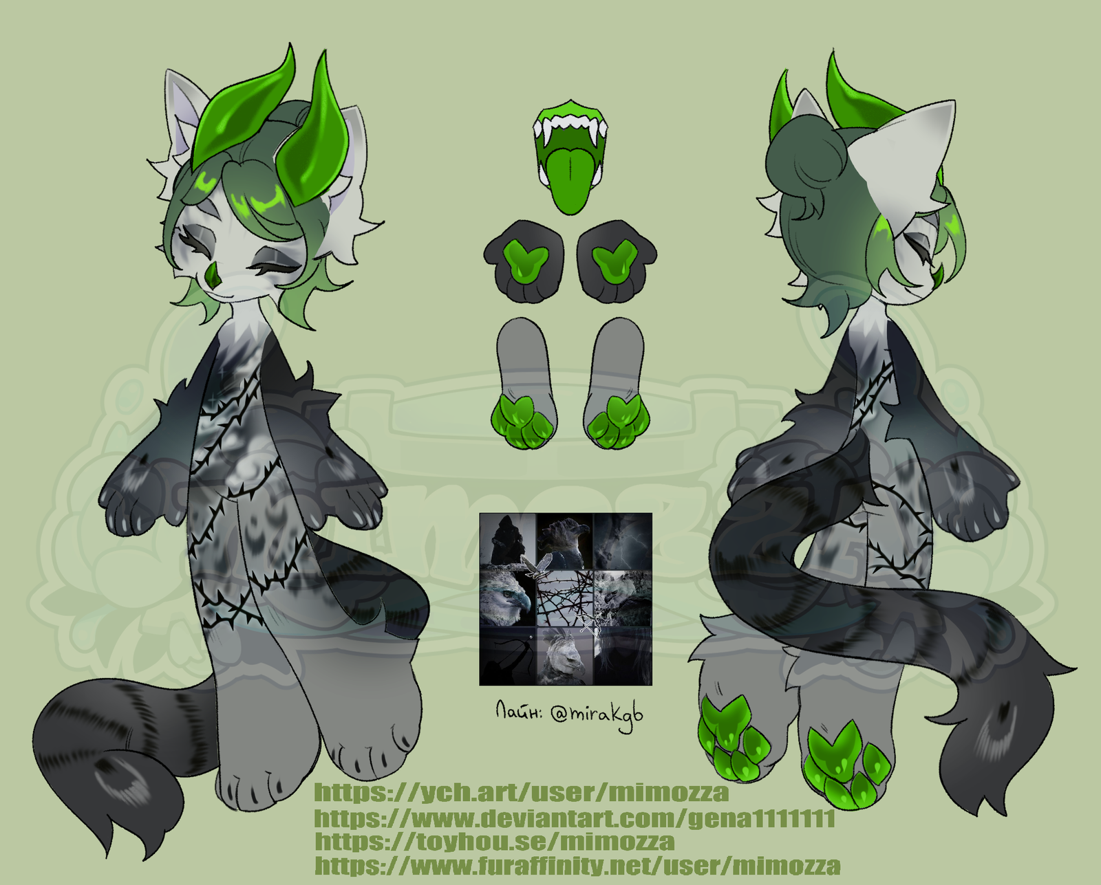 > at $200, will include all previous versions + minor changes in the color palette + full-reference art. ( https://www.furaffinity.net/gallery/mimozza/folder/1644555/Reference-sheets )