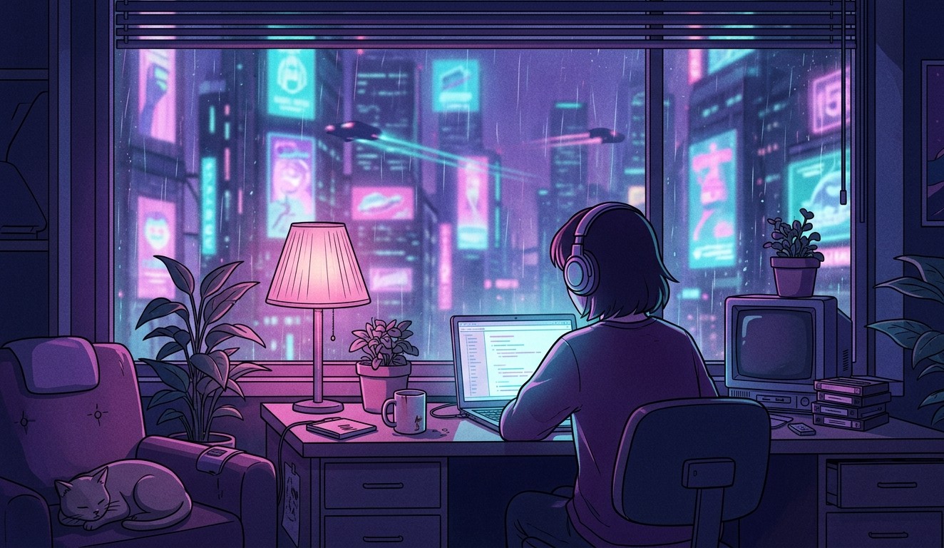 Transform your digital workspace with a curated collection of high-fidelity Lo-Fi visuals. Each piece is designed to evoke a sense of calm isolation amidst the glowing pulse of a futuristic city. Perfect for background visuals, desktop wallpapers, or as inspiration for your next late-night project.