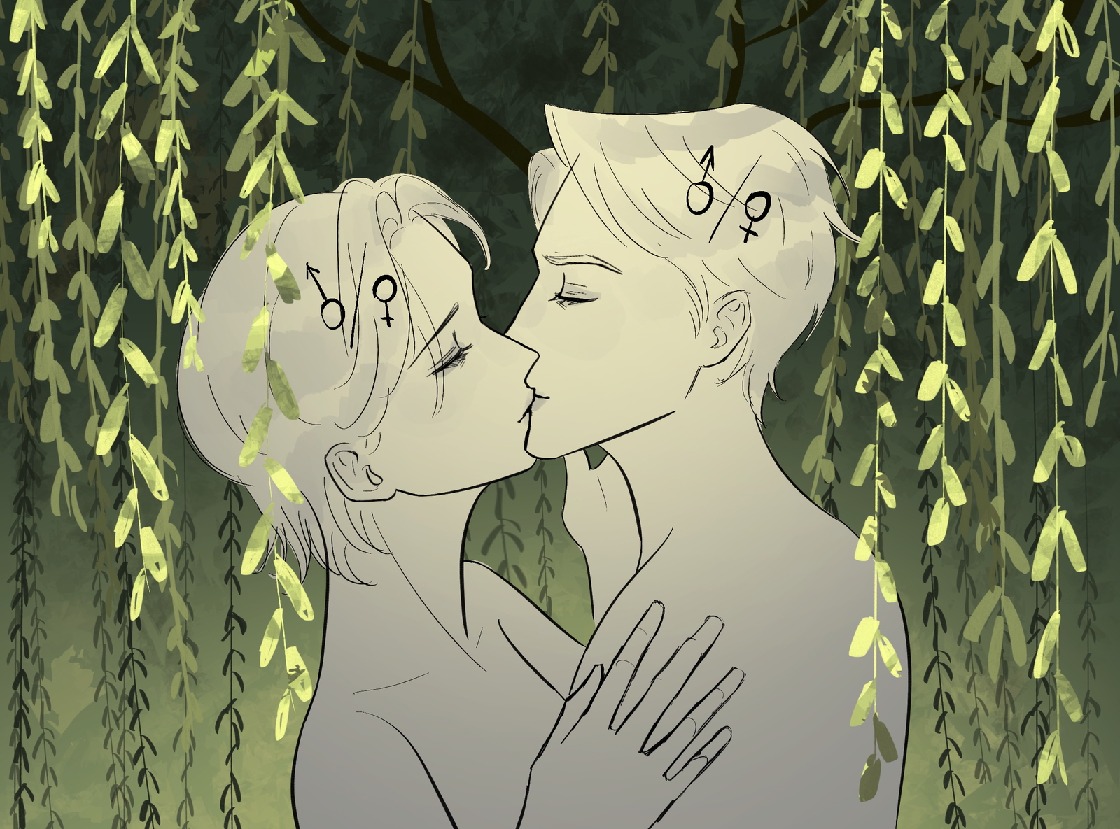 Kiss under willow tree