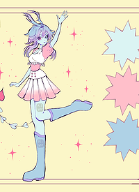 Hyperpop-style "elf", with small space motifs