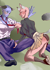 Female YCH getting fucked by futa Dash on her bed.