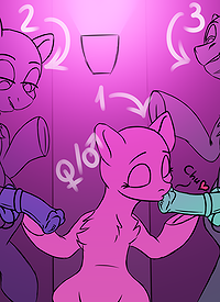 An animation of a pony getting spitroasted by gloryholes
