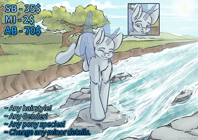 chibi pony sitting on butt YCH